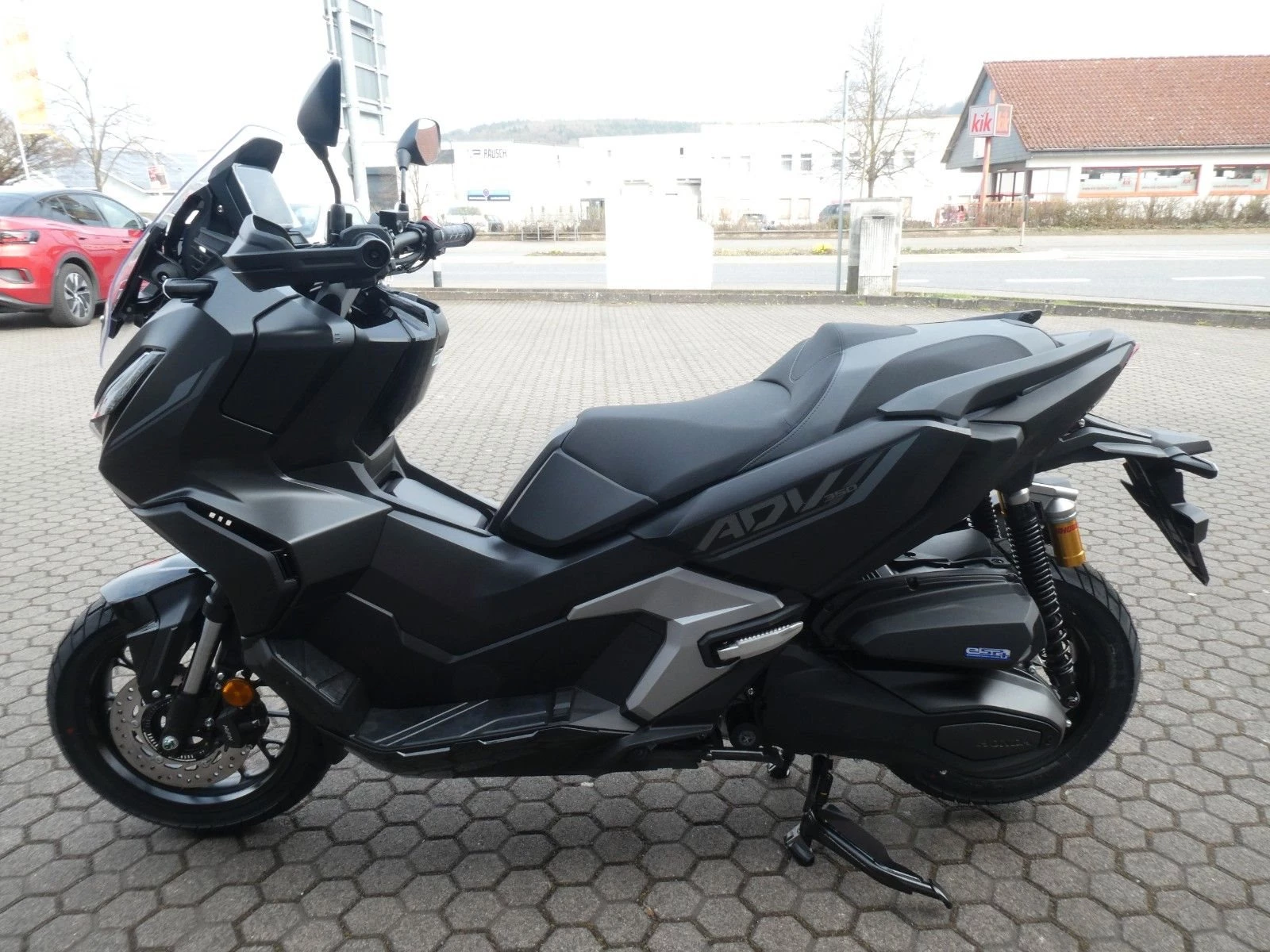 Zuversicht. Fühle es, wenn du den ADV350 Scooter fährst. Sportliche Motorleistung trifft auf ein robustes, leichtgängiges Fahrwerk und eine neue Hinterradaufhängung für mehr Komfort, um das Gelände mit Leichtigkeit zu bewältigen. Mit der automatischen Blinkerabschaltung ist der ADV350 nicht nur sicher, sondern auch funktional. Es geht aber nicht nur um Muskeln. Mit dem außerordentlich übersichtlichen 5-Zoll-TFT-Cockpit hast du während der Fahrt stets alles im Blick und dank Honda RoadSync-Integration jederzeit Zugriff auf Telefonanrufe, Musik und Navigation. Der ADV350. Auf diesen Roller kannst du dich verlassen.