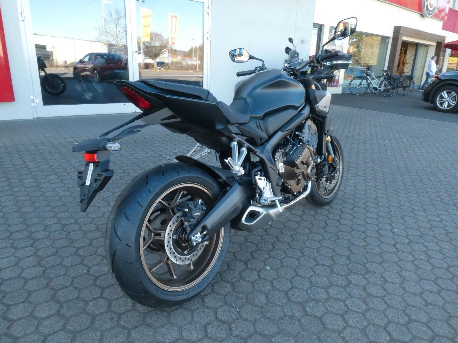 Vierzylindermagie pur. Die aufs Wesentliche reduzierte CB650R überzeugt im Stadtverkehr und auf der Landstraße durch herausragende Beschleunigung, agile Leichtigkeit und das unverwechselbare, von der CB1000R inspirierte Neo Sports Café-Design.