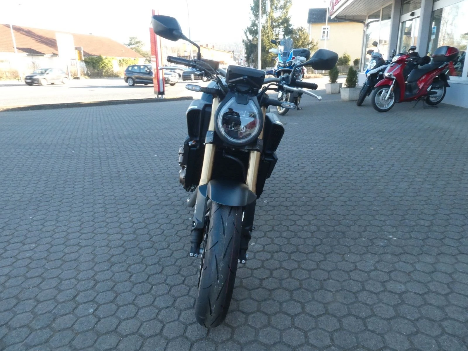 Du hast es in der Hand. Der DOHC-Vierzylinder-Reihenmotor leistet in der Spitze 70 kW (95,2 PS) - der rote Bereich beginnt bei 12.000 U/min - und bietet ein Drehmoment von 63 Nm. Honda Händler können das Bike für alle mit A2-Führerschein auf 35 kW drosseln und die Drosselung entfernen, sobald ein A1-Führerschein vorgelegt werden kann. Da Leistung Kontrolle braucht, verhindert die Anti-Hopping-Kupplung das Blockieren des Hinterrads bei starkem Bremsen und Herunterschalten. Das Notbremssignal (ESS) wird bei Vollbremsungen aktiviert und sorgt so für bessere Sichtbarkeit auf der Straße.