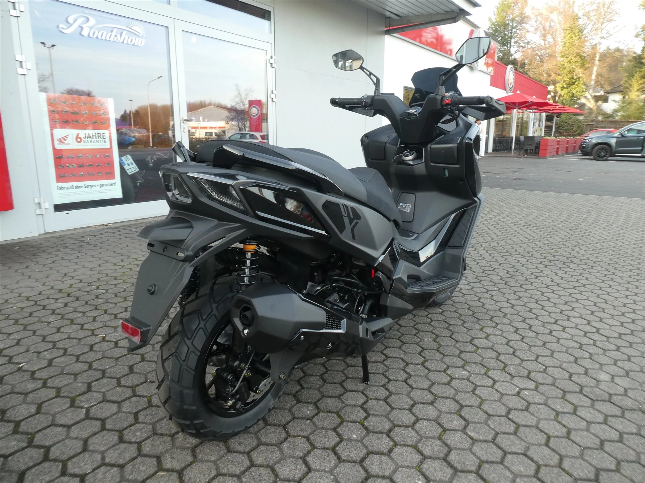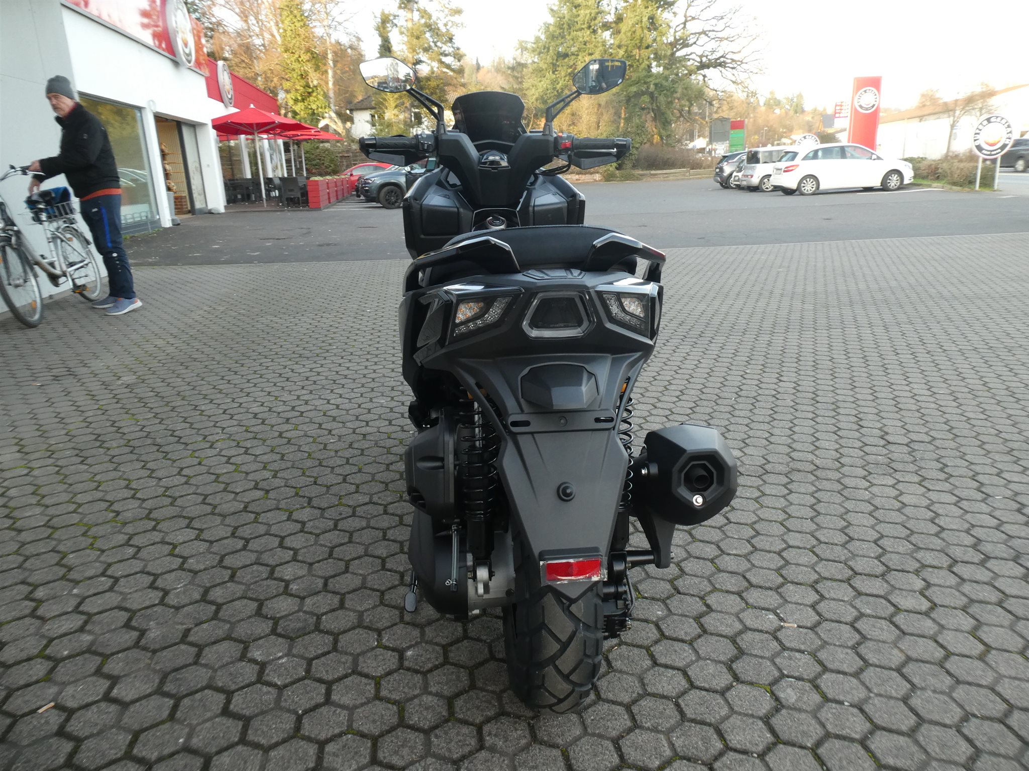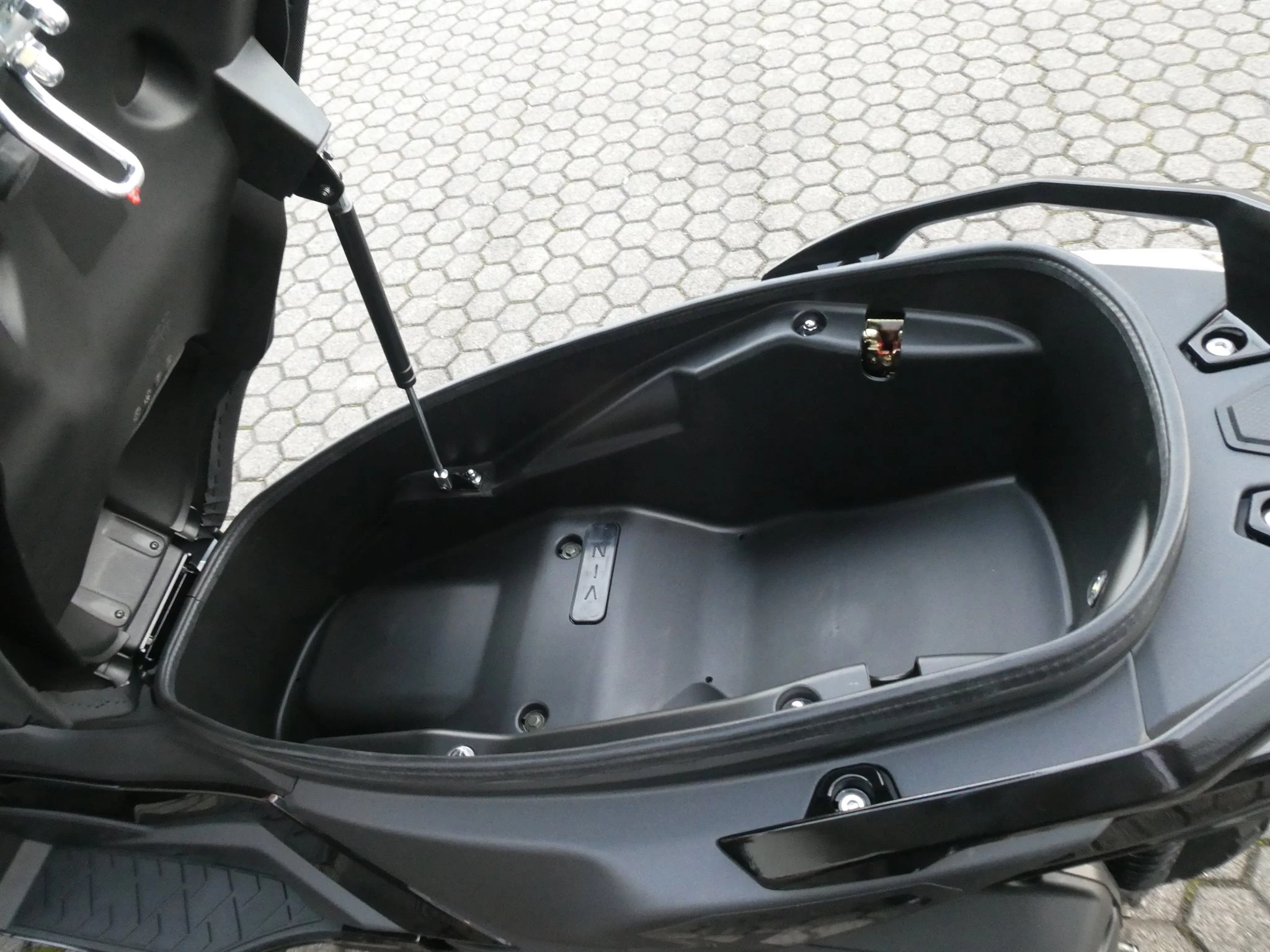 Unter die abgestufte Sitzbank passen bequem zwei Integralhelme und die LED-Beleuchtung sorgt bei allen Lichtverhältnissen für eine klare Sicht. Auch optisch macht der DT X in mattschwarz einiges her.