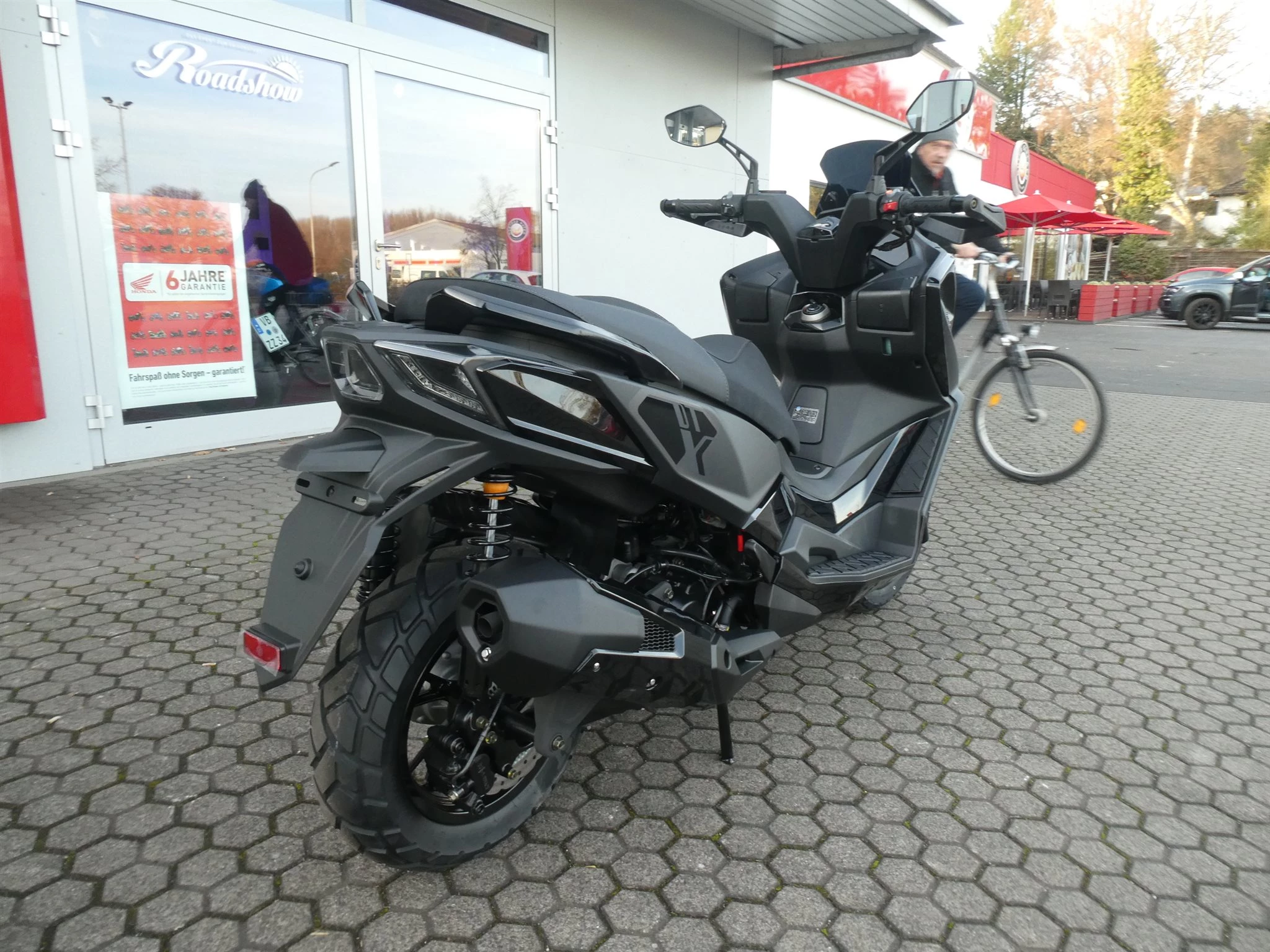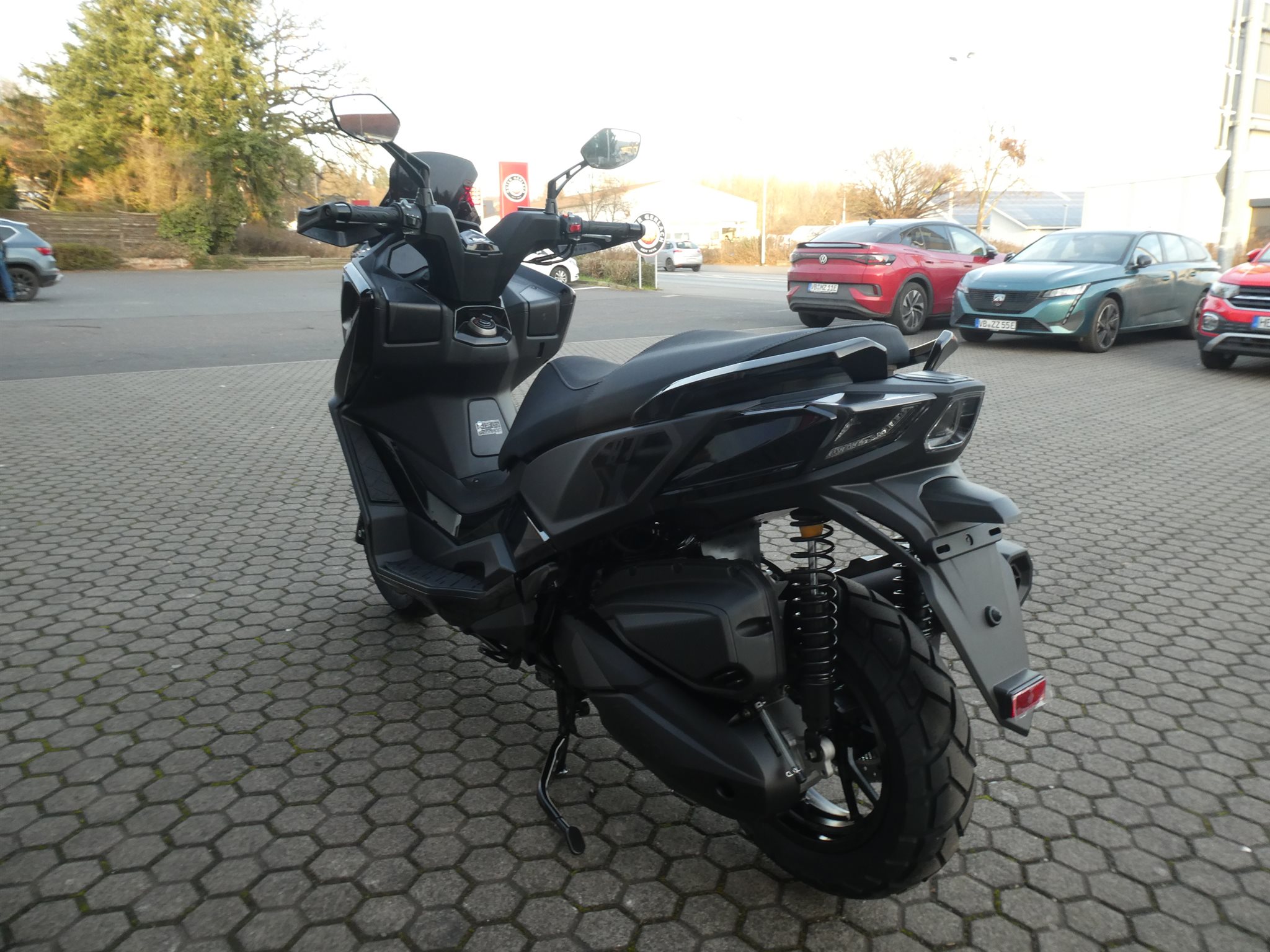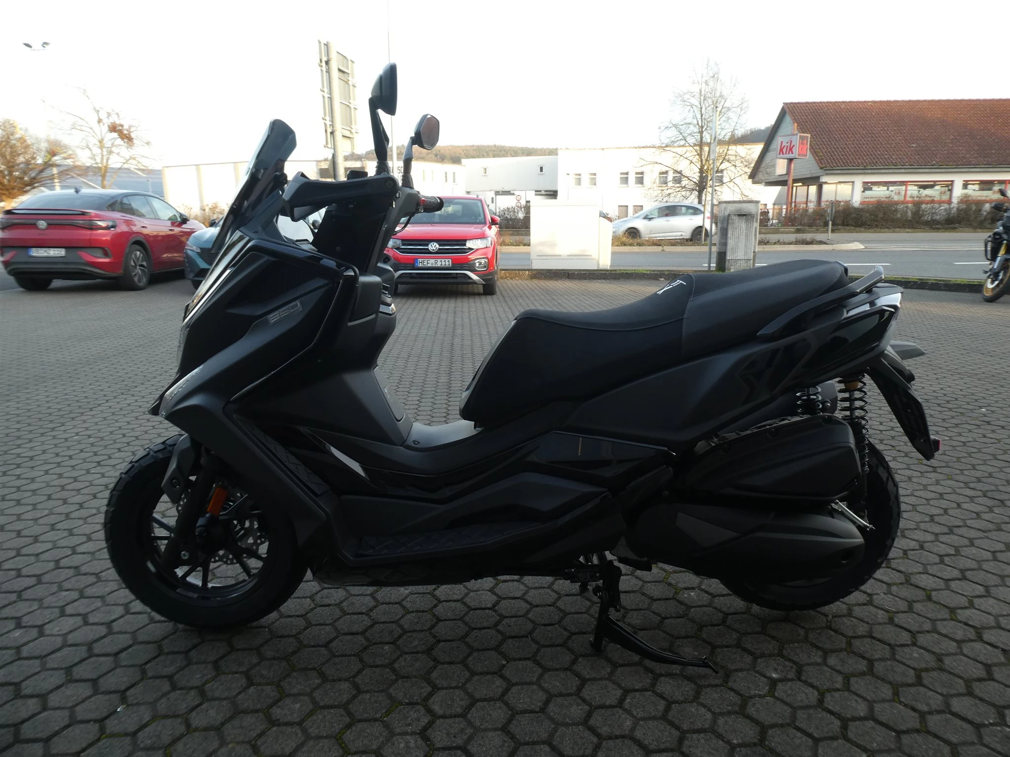 Unter die abgestufte Sitzbank passen bequem zwei Integralhelme und die LED-Beleuchtung sorgt bei allen Lichtverhältnissen für eine klare Sicht. Auch optisch macht der DT X in mattschwarz einiges her.