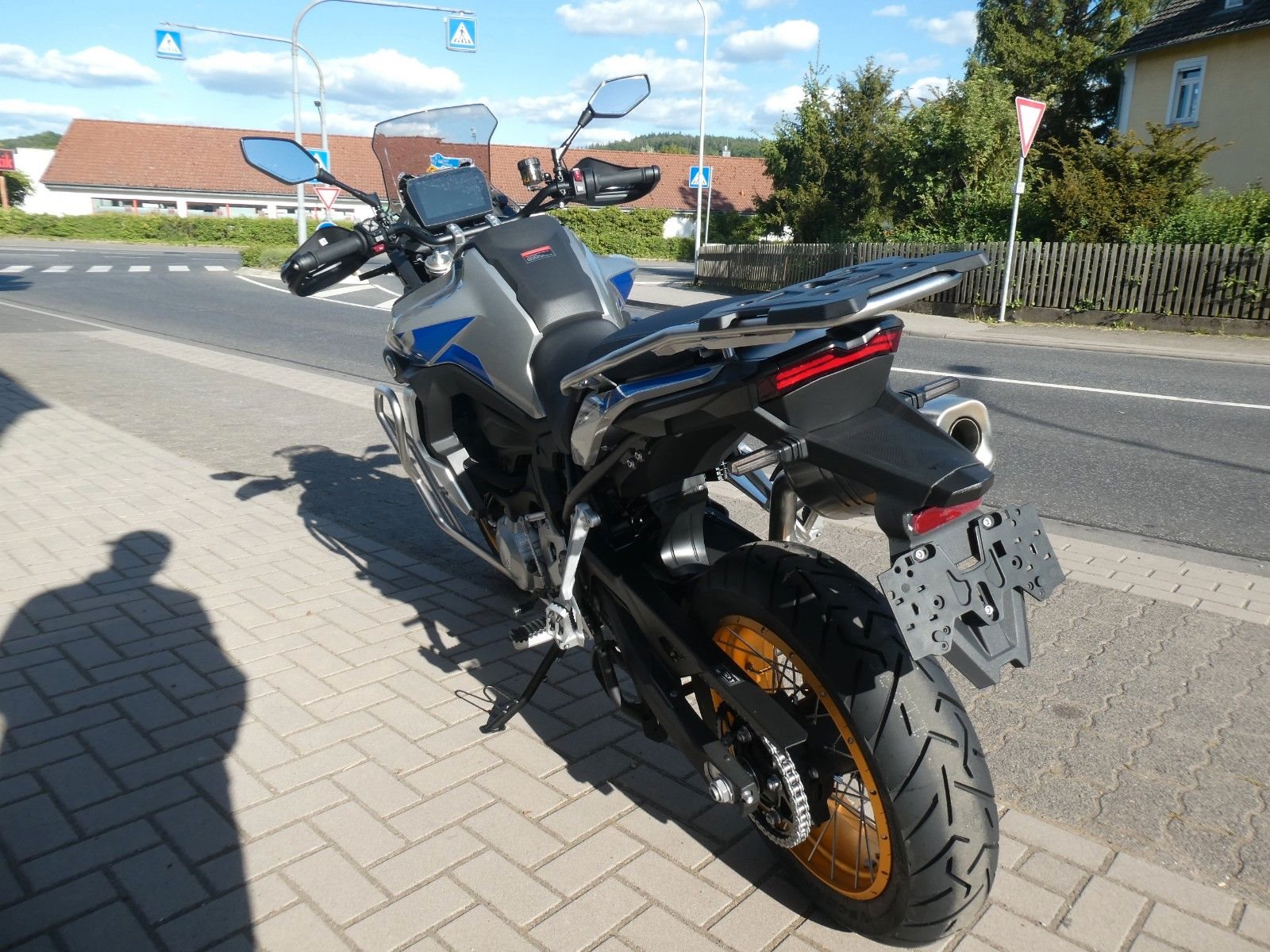 Kurven ABS, Quickshifter, Antihopping Kupplung, Brembo-Bremsen, ABS und Tracktionskontrolle, Lenkungsdämpfer, TFT Farbdisplay, LED-Beleuchtung, Nebelscheinwerfer mit Abbiegelichtfunktion beim Blinken, 4 Fahrmodi, verstellbare Scheibe, Tempomat, Sitzheizung, Griffheizung, Totwinkel-Assistent Radar, Frontkamera, Handschützer, Hauptständer, Sturzbügel, einstellbarer Handbremshebel und Kupplungshebel, Keyless, Reifendruckkontrolle, USB und 12 V Dose.